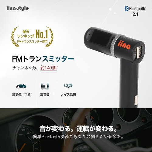 1年保証 FMトランスミッター Bluetooth 高音質 スマホ 充電 も可能!【選べるチャンネル数なんと140個!】 12V 24V 対応 ブルートゥース トランスミッタ 電話 USB 2ポート 2.1A ワイヤレス 無線 音楽 車 ハンズフリー 充電器 音楽再生 iPhone8 iPhoneX Android iina-style